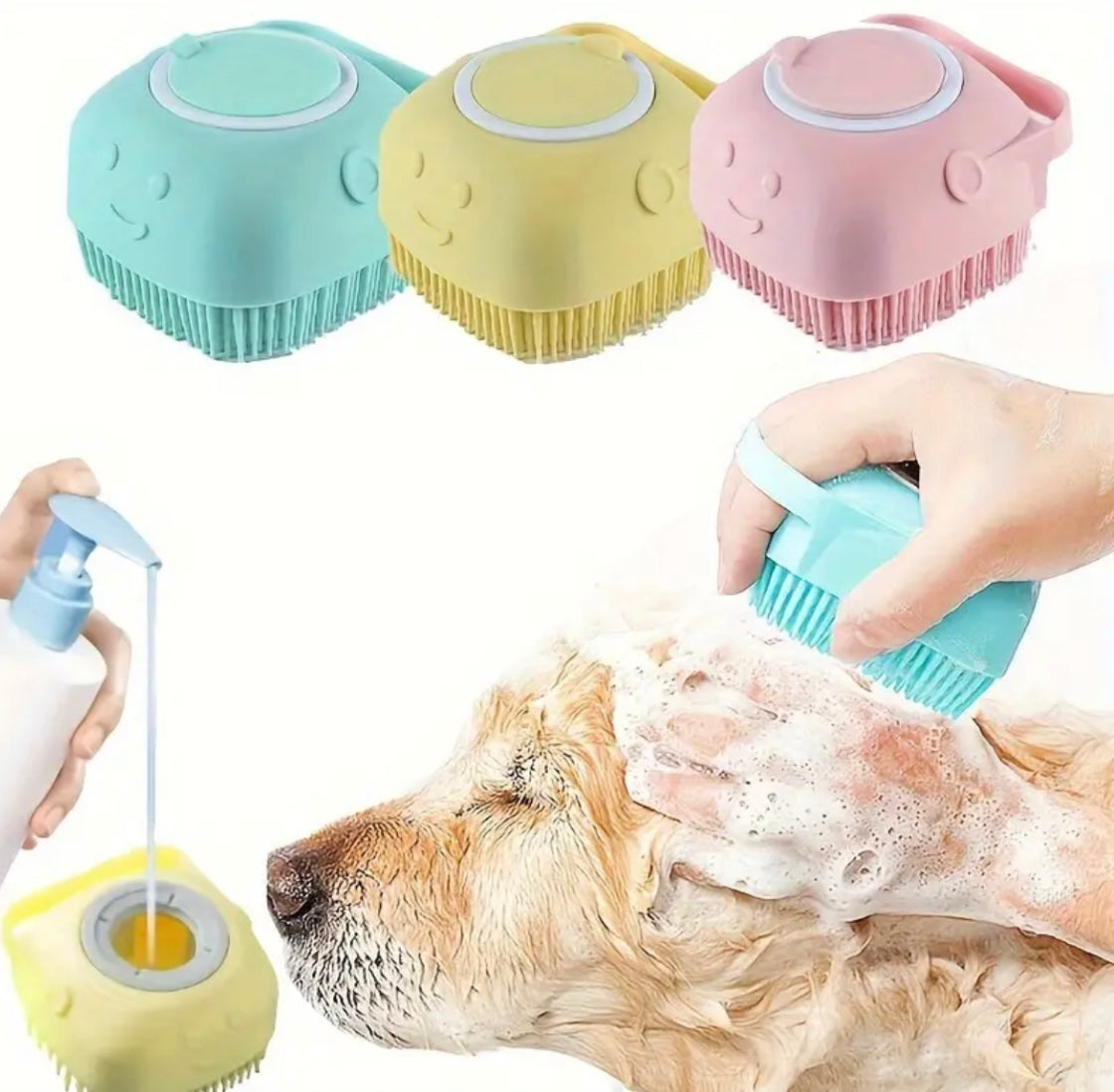 Perie de îngrijire pentru animale de companie din silicon cu bile de masaj - Instrument 2 în 1 pentru baie și masaj pentru câini și pisici